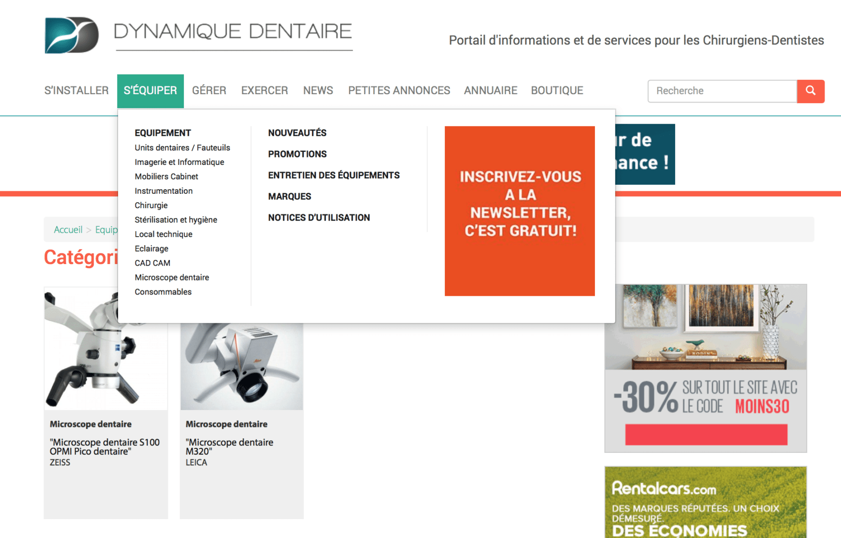 La base de données de Dynamique Dentaire comporte 11 catégories et 70 sous-catégories, dans lesquelles sont répertoriés plus de 500 équipements dentaires : du cone beam à la simple turbine.