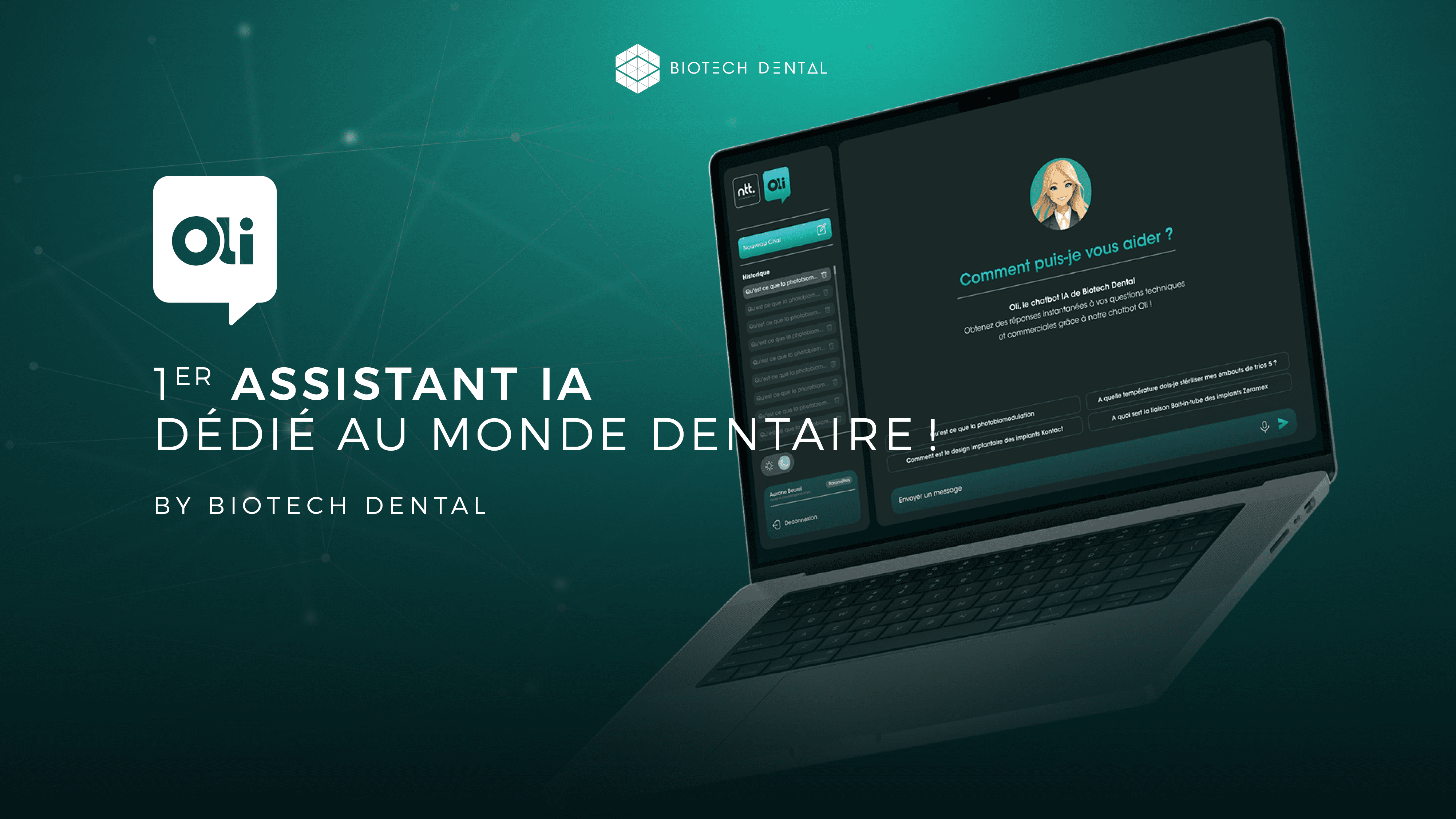 Le 1er octobre 2024, Biotech Dental a annoncé le lancement d’OLI, une intelligence artificielle (IA) générative spécialement conçue pour les professionnels de la santé bucco-dentaire. Ce nouvel outil, nommé OLI (Optimized Learning Intelligence), se distingue par sa capacité à répondre aux questions techniques, scientifiques et commerciales spécifiques aux cabinets dentaires.