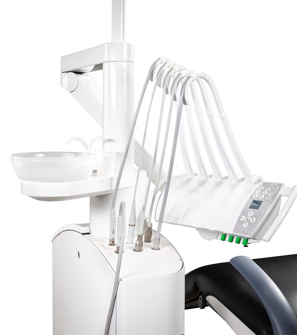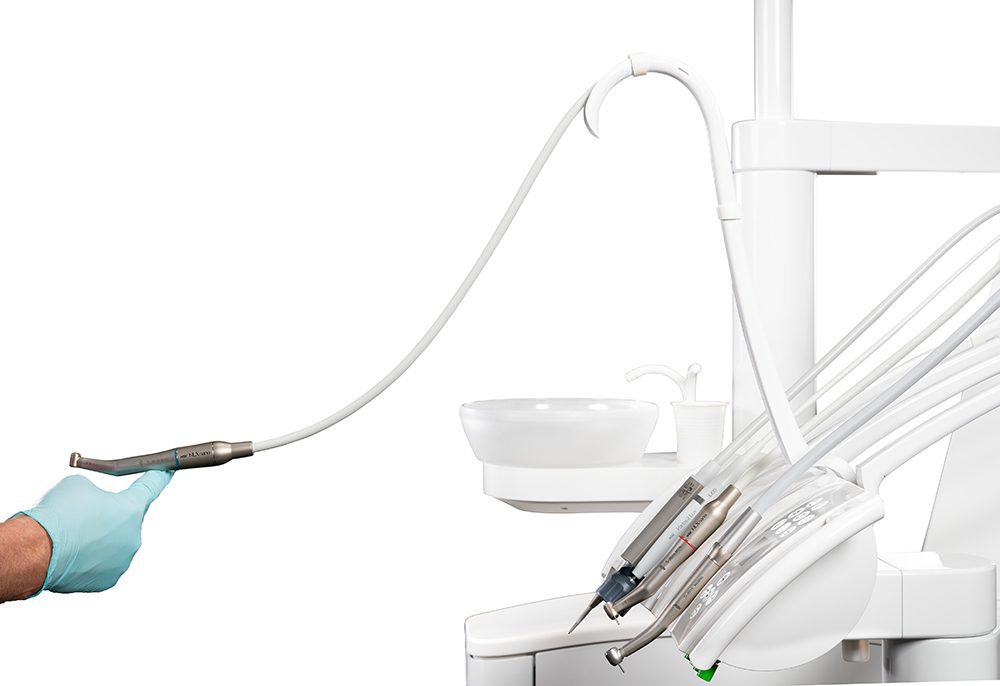 > Jusqu’à 4 logements : 2 tuyaux d’aspiration, une seringue 3 fonctions, acier inoxydable Minilight Luzzani et une lampe à polymériser Mini Led Acteon