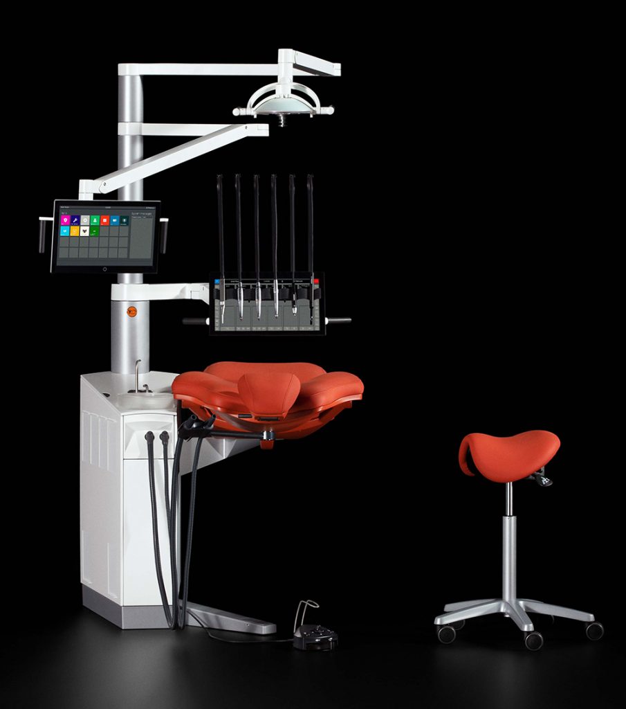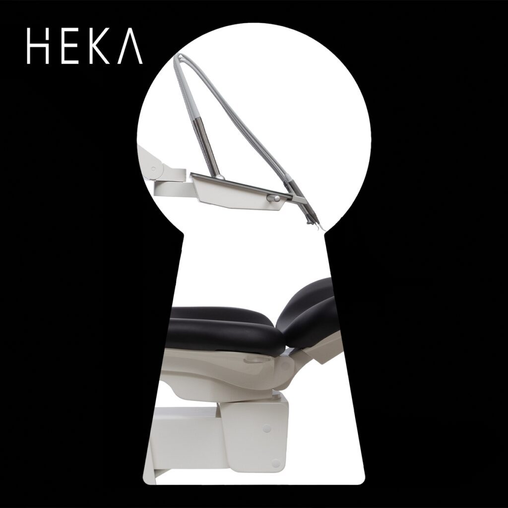 Heka I+ de HEKA DENTAL A/S : équipement dentaire design, ambidextre, sans crachoir, conçu avec des surfaces en métal lisse, basé sur le bien-être soigné/soignant. Garantie jusqu’à 7 ans.