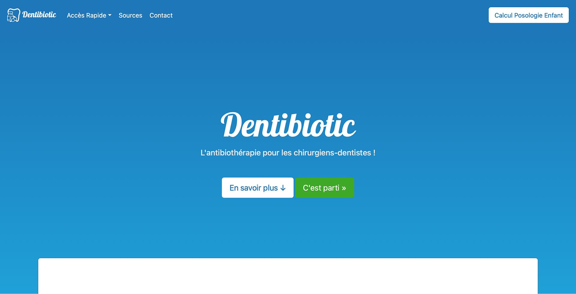 Dentibiotic.fr a ouvert ses portes le 20 janvier 2021 et propose en accès gratuit, toutes les recommandations de prescriptions d’antibiotiques classées par catégories, un calculateur de posologie pour enfant pour chaque molécule et type d’antibiothérapie, les recommandations de bonnes pratiques cliniques sur les foyers infectieux bucco-dentaires et un listing des antibiotiques utilisés dans le milieu de l’odontologie.