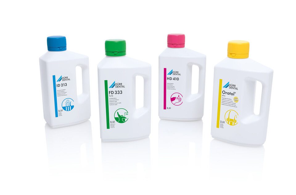 Pour vous simplifier la tâche, Dürr Dental propose le système d’hygiène logique à 4 couleurs, composé d’une gamme de produits tous compatibles entre eux et simples à manipuler. Chaque couleur représente un domaine d’application spécifique (les instruments, les surfaces, la peau et les mains ainsi que les domaines spéciaux) pour vous y retrouver facilement.