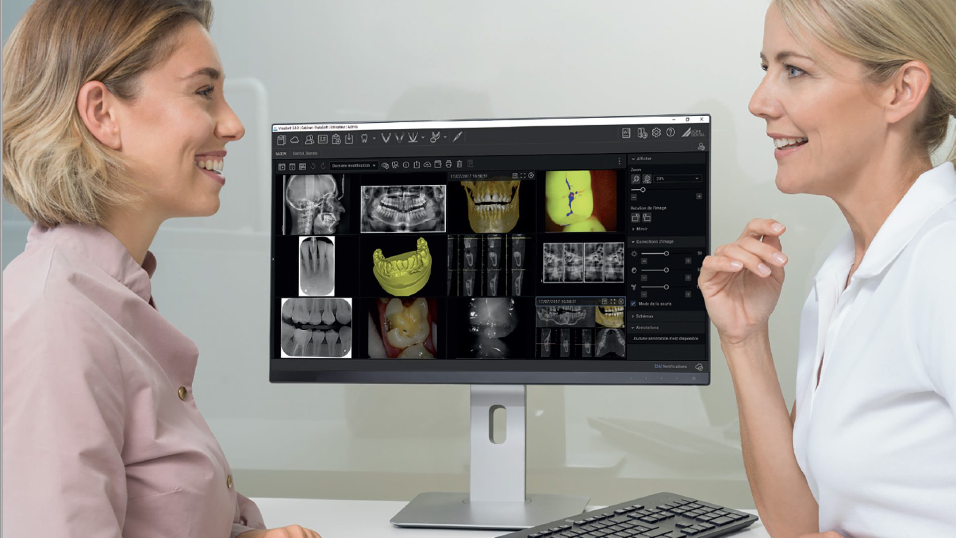 VistaSoft de Dürr Dental est un logiciel d’imagerie aux multiples facettes, qui permet à la fois, de regrouper tous les systèmes d’imagerie (CBCT, radio panoramique, ceph, appareil photo….), d’exporter, d’importer et de partager des données grâce à son cloud, d’accueillir facilement des logiciels de gestion ainsi que des logiciels tiers, de réaliser des analyses céphalométriques, mais aussi de planifier sa pose d’implants. Ses nombreuses fonctionnalités sont toutes accessibles en un clic, pour rendre votre flux de travail intuitif et extrêmement rapide.