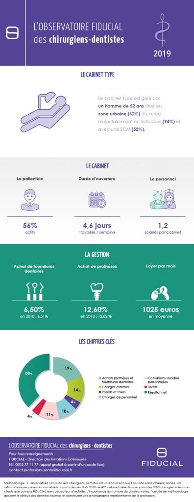 Les ratios d’analyse présentés, sont établis à partir des résultats 2018, de 400 cabinets dentaires, sélectionnés parmi les 2000 chirurgiens-dentistes, clients de Fiducial.