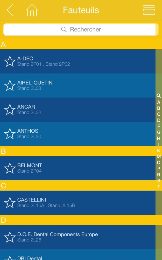 Tous les exposants du congrès ADF 2015 sont classés par type de produits ou de services proposés et sont disponibles rapidement.