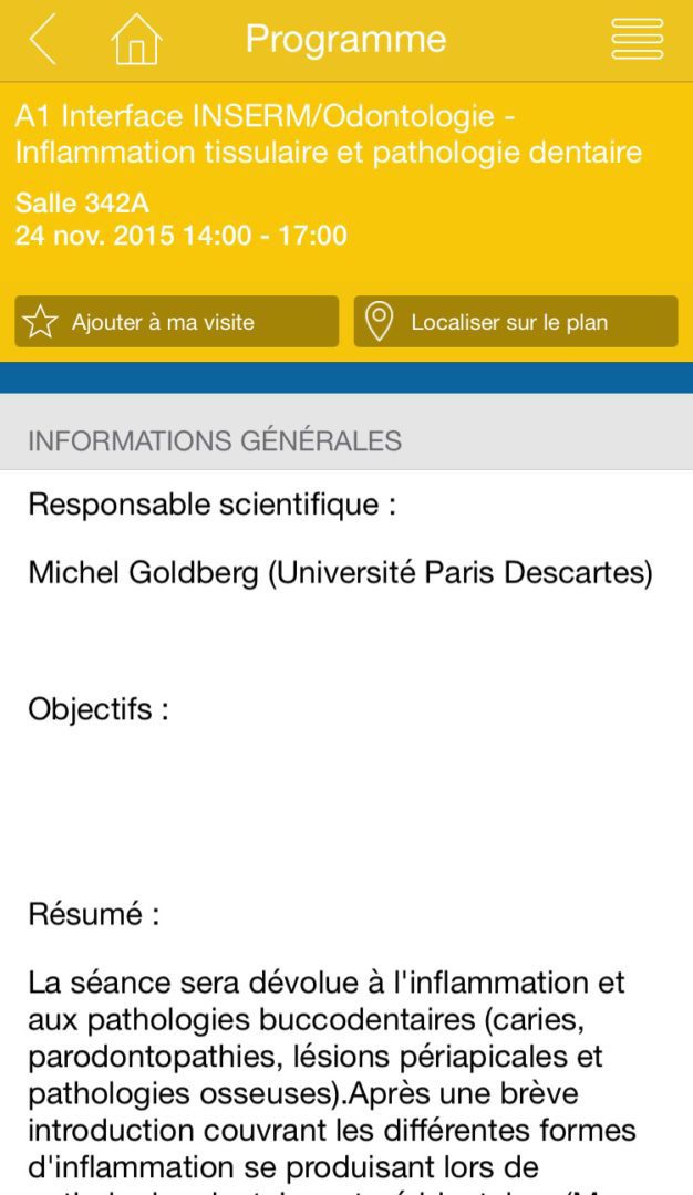 Un menu convivial permet d’accéder aux informations nécessaires et indispensables du congrès :