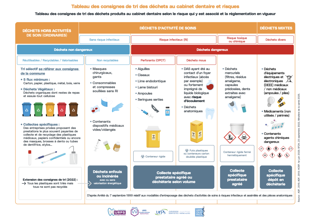 Le tableau diffusé par l’URPS Île-de-France a été conçu pour répondre à une difficulté concrète : la multiplicité des déchets produits au cabinet.