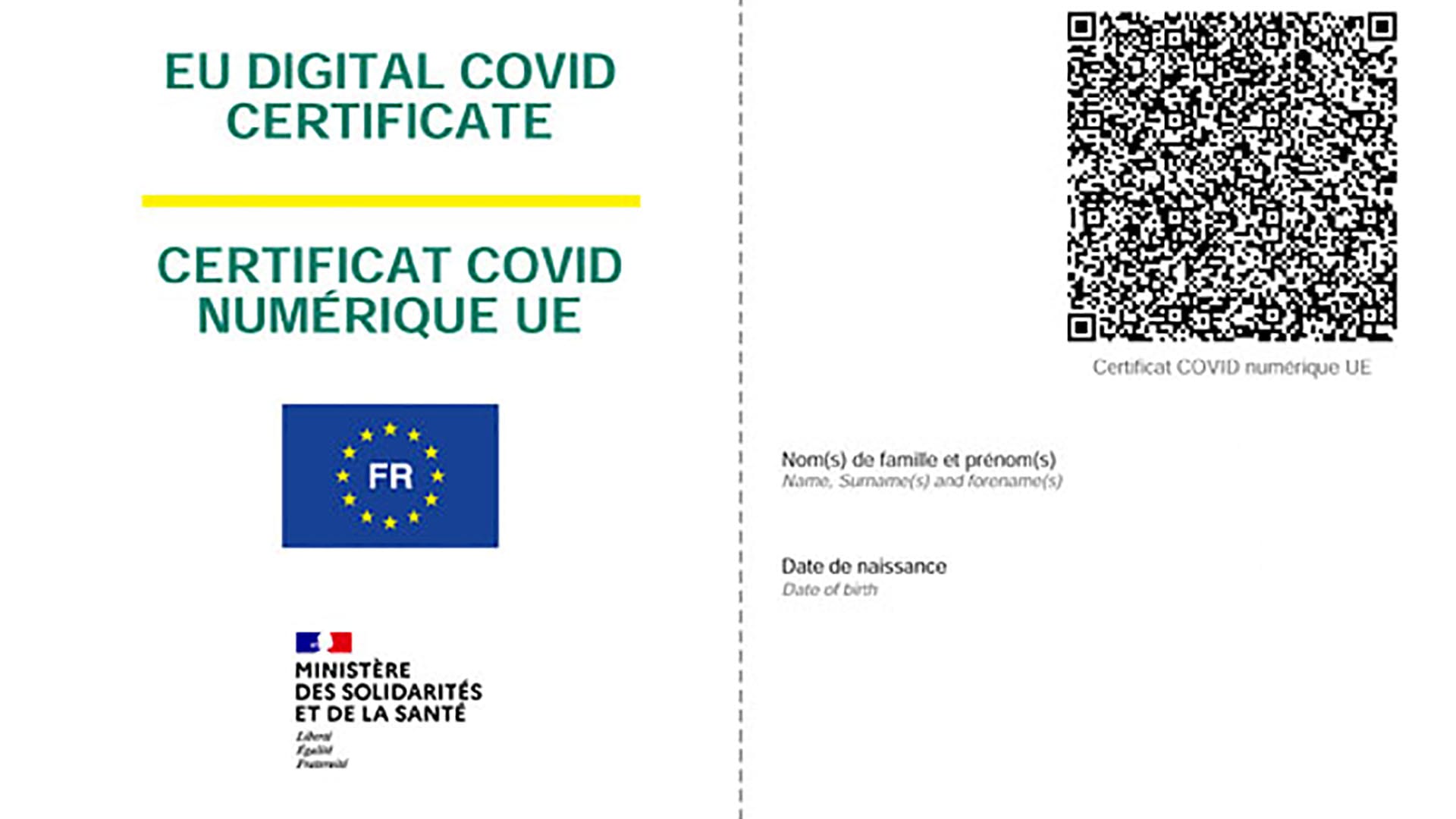 - une attestation de vaccination certifiée conforme à la norme européenne, contenant un QRcode ;